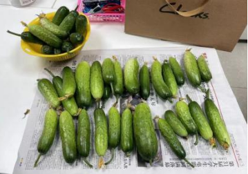 经过一个多月的精心呵护,“發發菜园”终于迎来了丰收的喜悦。5月28日一大早,财务处的收获先锋队便和花房师傅约好时间开始第一波的采摘工作,刚刚成熟的黄瓜的清香扑面而来,新鲜脆嫩。财务处的同志们不仅圆了自己种果得果的田园梦,还把收获的黄瓜分享给了前来办理业务的老师,邀请大家一起品尝亲手种下的果实,分享丰收的喜悦。