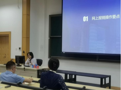 财务处会计科蒋楠,介绍和分享了网上报销系统的操作流程、系统操作技巧;在日常报销方面结合财务规章制度,解答了关于交通费、差旅费、资产报销的常见问题,并就公务卡使用说明注意事项。