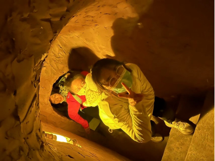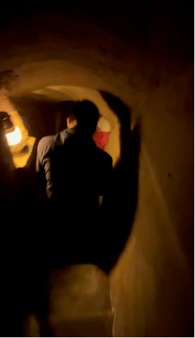 随后,在现场工作人员带领下,大家参观了地道遗址。目前供人们参观的地道遗址有650多米。地道内有瞭望口、射击口、休息室和指挥所,有单人掩体、陷阱、碾盘和庙台暗堡等战争设施,还有水缸、炕洞、墙柜、锅台、猪圈、柴棚、驴槽等较隐蔽的出入口和瞭望楼,纵横交错、户户相通。